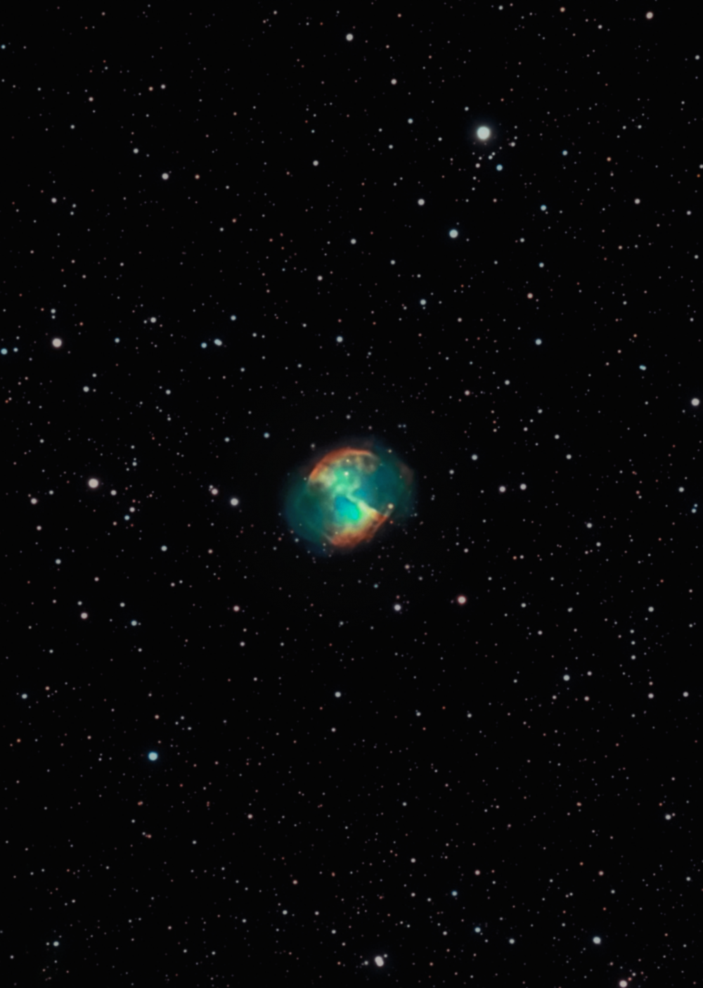 The background color is suppressed, and the green tint on the nebula is not suppressed.