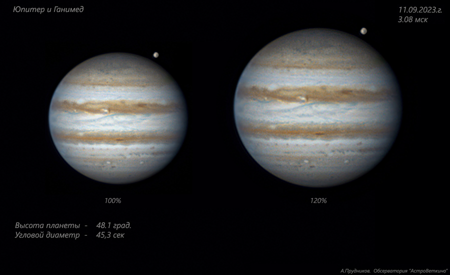 Tal-250K, LB2x Barlow, LB 1.5x Zeiss, equivalent focal length ~3.4 meters, ADC ZWO. Camera QHY5III290C, 100% and 120% of original. Image quality during capture about second grade on the Antoniadi scale, light haze, no wind. Observatory "AstroVetkino" https://astronomy.ru/forum/index.php/topic,158764.0.html.