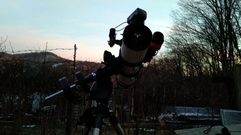The Newtonian "DeepSky 130/650" undergoes thermal stabilization before a "working" night. The result was photographs of the M97 nebula and Markarian's Chain.