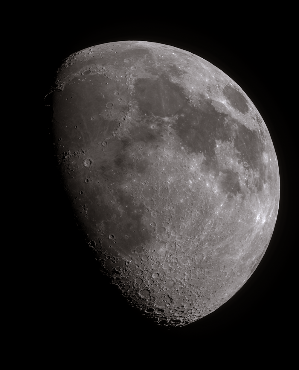 A video was captured with 3000 frames, and the 1000 best frames were stacked into a single image with enhanced detail.