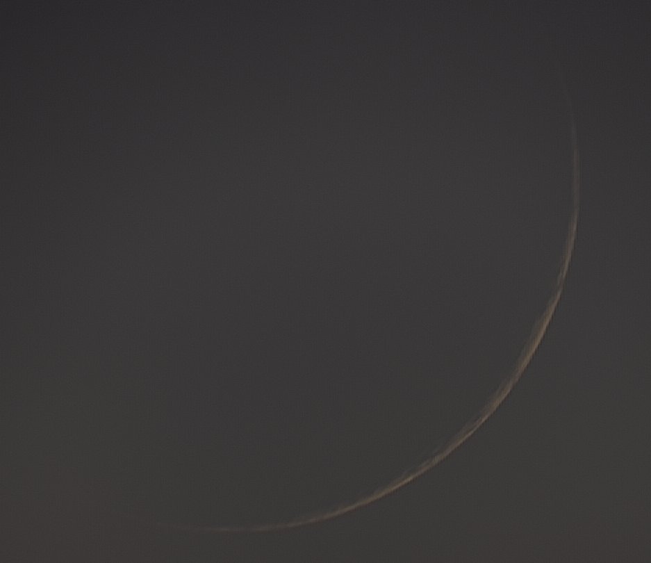 I've updated my personal record for observing and photographing the thin waxing crescent Moon! The illuminated percentage of the waxing Moon was about 2.07% – 31 hours old. My previous record stood for 2 years (35 hours old): https://www.deepskyhosting.com/B2fmJd8