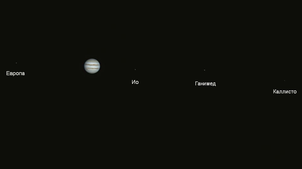 Panoramic shot of Jupiter with Galilean moons