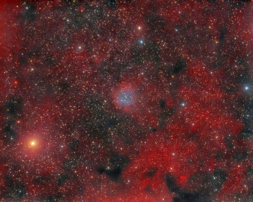 StDr 15 is a rather faint object, visible in the center of the image with a size of about 5x3.8 arc minutes. This nebula was discovered by Xavier Strottner and Marcel Drechsler in November 2019.