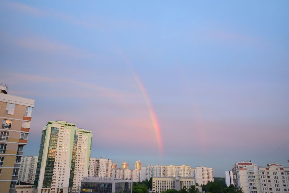 On the evening of June 21, 2022, the day of the summer solstice, a double rainbow was observed 15 minutes before sunset (21:06).