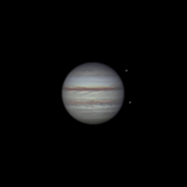Nearly 4 hours of rotation. UTC 17:50-21:30 on 12.08.22. Io has moved out, Ganymede passed behind, and the GRS has emerged. I couldn't even imagine such a composition. 72 single frames manually tracked. 32 hours of processing, considering a not-so-fast laptop. There were mistakes, and I had to take steps back. But I believe it was worth it.